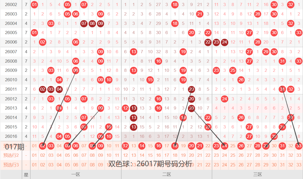 先介绍下上期开奖号码的基本情况,红球奇偶比:3:3,区间比:4:0:2,012路比:3:2:1,通过上期号码简单介绍,分享下26017期号码球个人认为的出号可能,供大家参考!