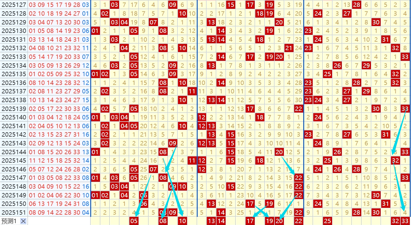 回顾上期25151期开奖08 09 14 22 28 30 + 04 ,其中一小区01-11出2个,二小区12-22出2个号,三小区23-33出2个!