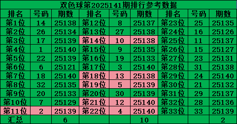 以双色球自开奖以来每个号码出现的次数排位,可分为冷热温三区: