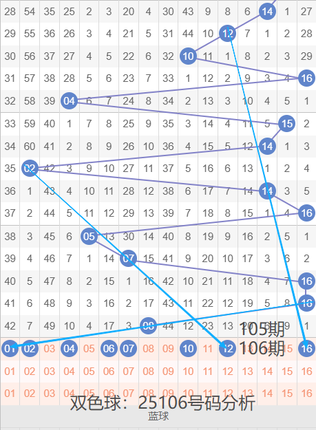 上期蓝球开出:08,偶数小号,该号码遗漏17期开出,近期号码在中后区间连续出号,防继续走出大号的趋势,近期关注一下1路号码的回补可能,个人本期预选蓝球:01 02 04 06 07 10 12 16 中号码出现的机会比较大,本期个人看蓝球走中低位,同时防下上期号码的周边码,终选5码:02 04 07 10 16。