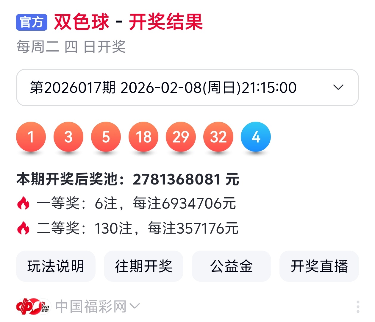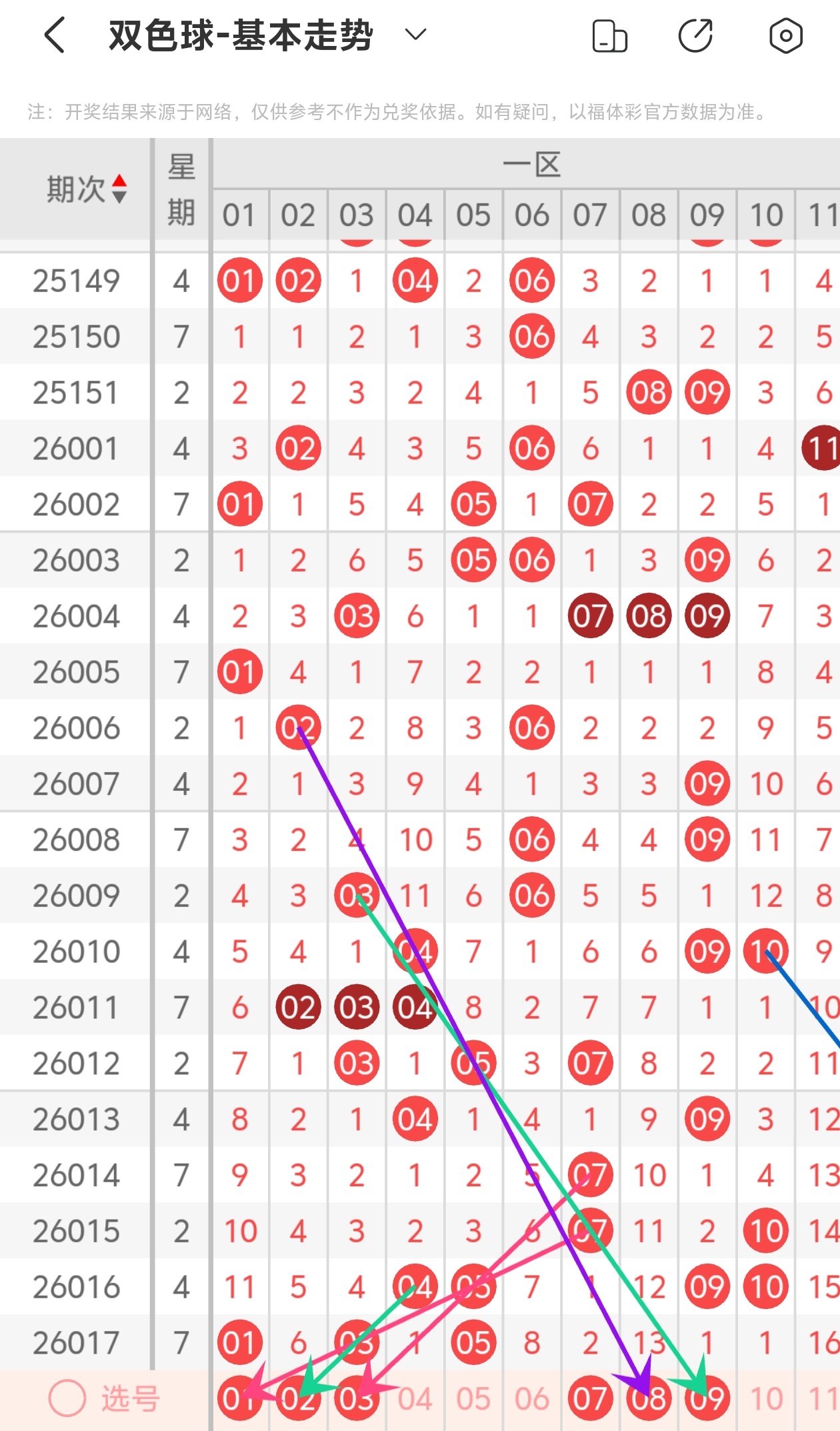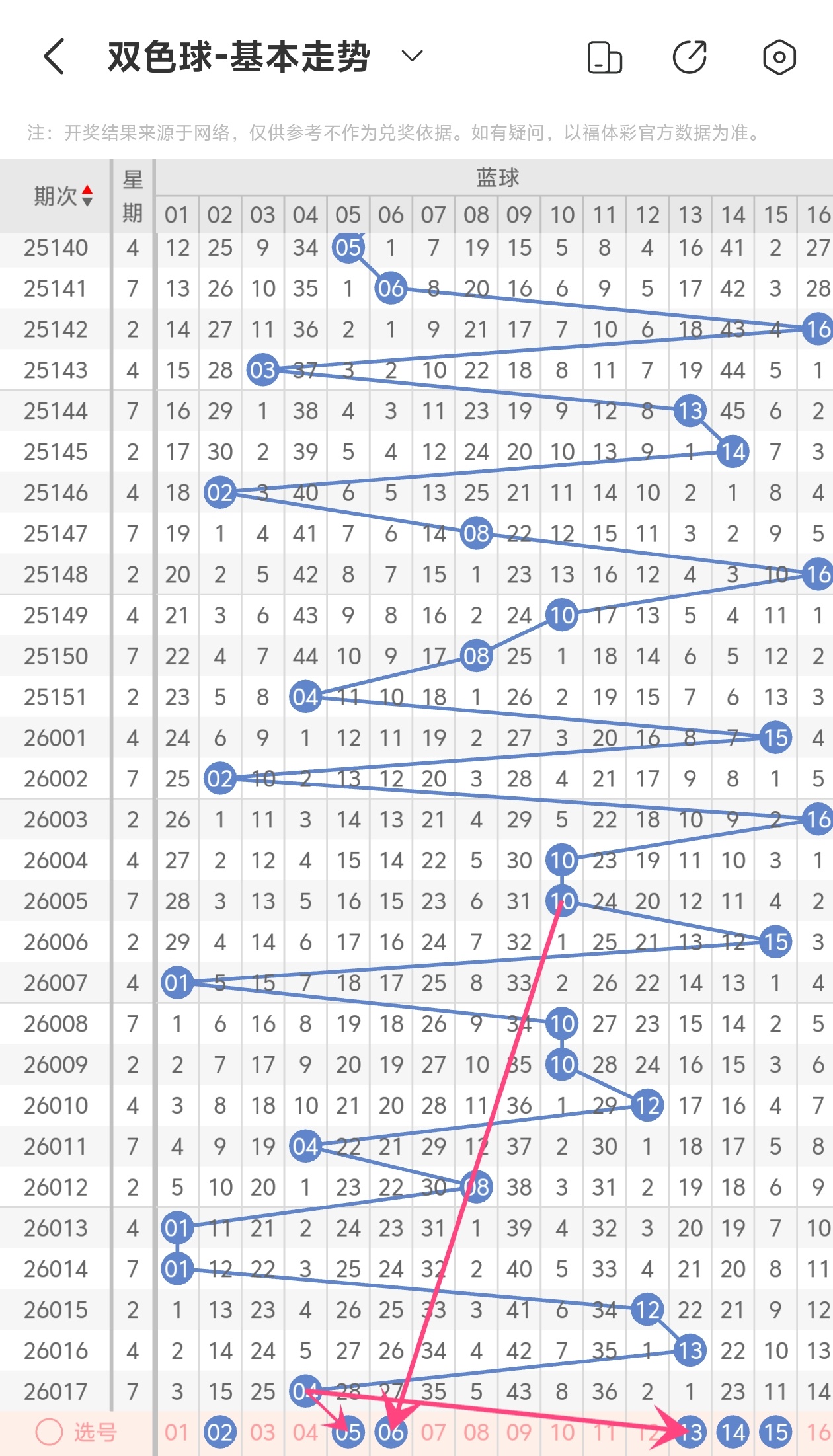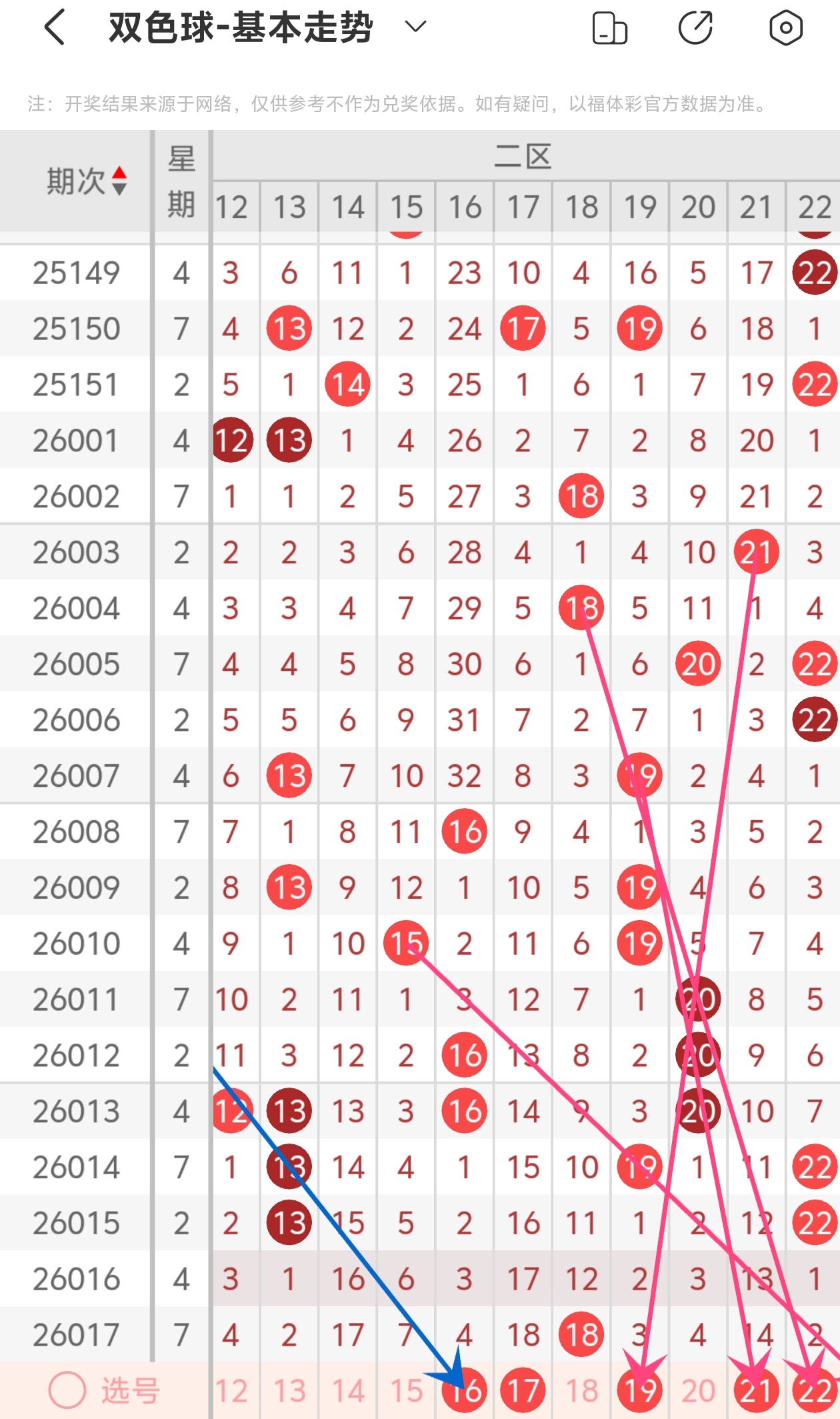 下面是我对2026018期福彩双色球的分析和预判,希望通过我的分析能让大家今晚大红!福彩双色球上期开奖号码如下图: