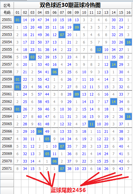 蓝球本期有热蓝8枚,冷蓝8枚,蓝球冷码数量稍多。上期开出热蓝,由于近期蓝球冷热规律紊乱,本期蓝球冷热难定。