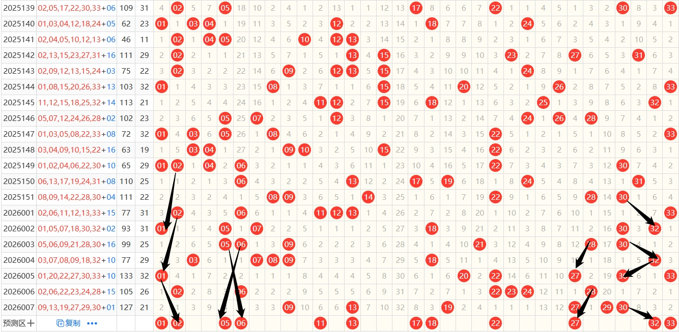 回顾上期26007期开奖09 13 19 17 29 30+ 01   ,其中一小区01-11出1个,二小区12-22出2个号,三小区23-33出3个!
