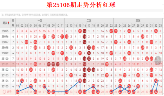 从三区分布来看,近期三区的分布较为均衡,不过二区略显强势。我们可以考虑采用 2:2:2 的比例,或者适当偏重二区,使用 1:3:2 的方式来选择号码。