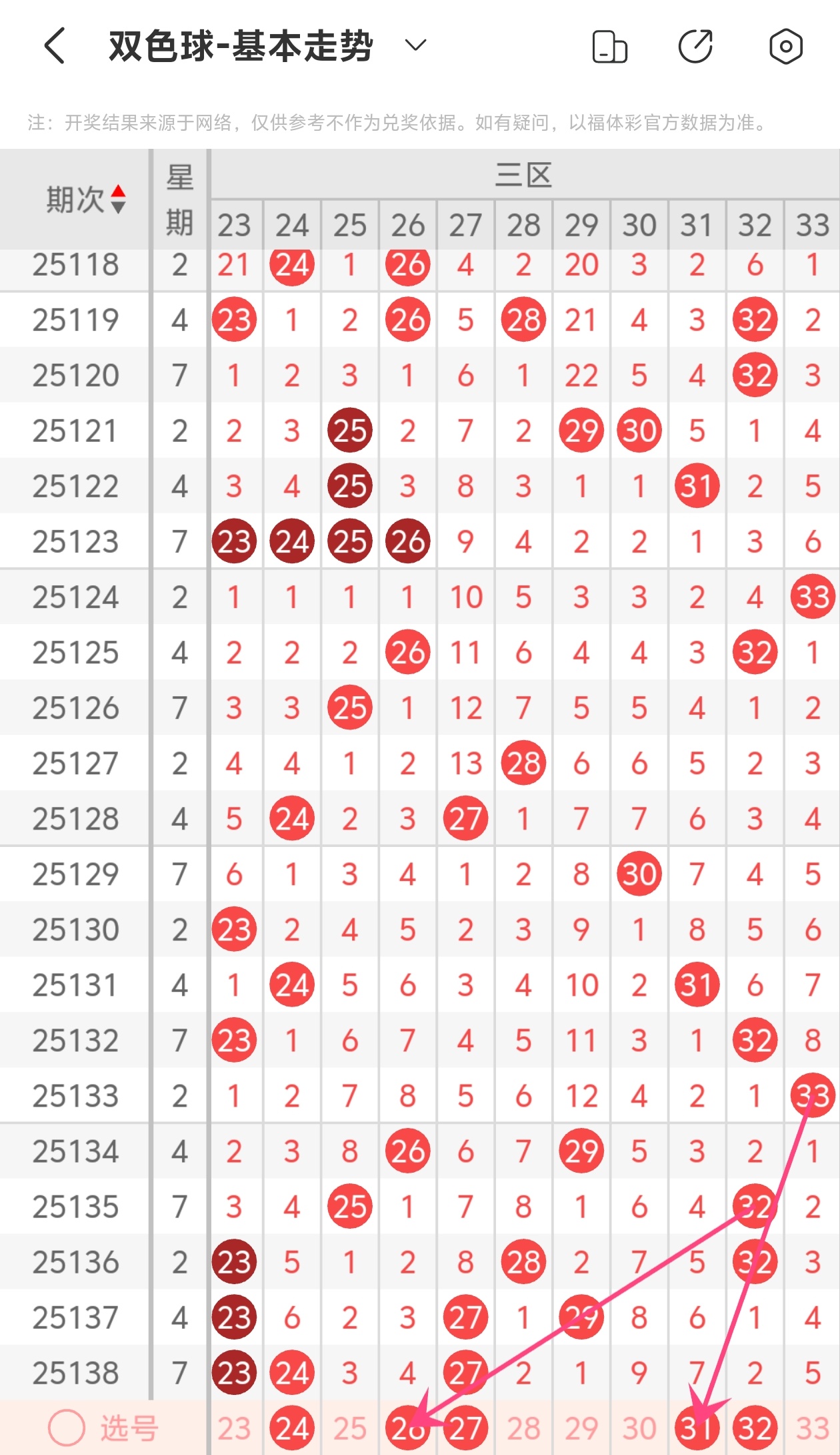 下面是我对2025139期福彩双色球的分析和预判,希望通过我的分析能让大家今晚大红!福彩双色球上期开奖号码如下图: