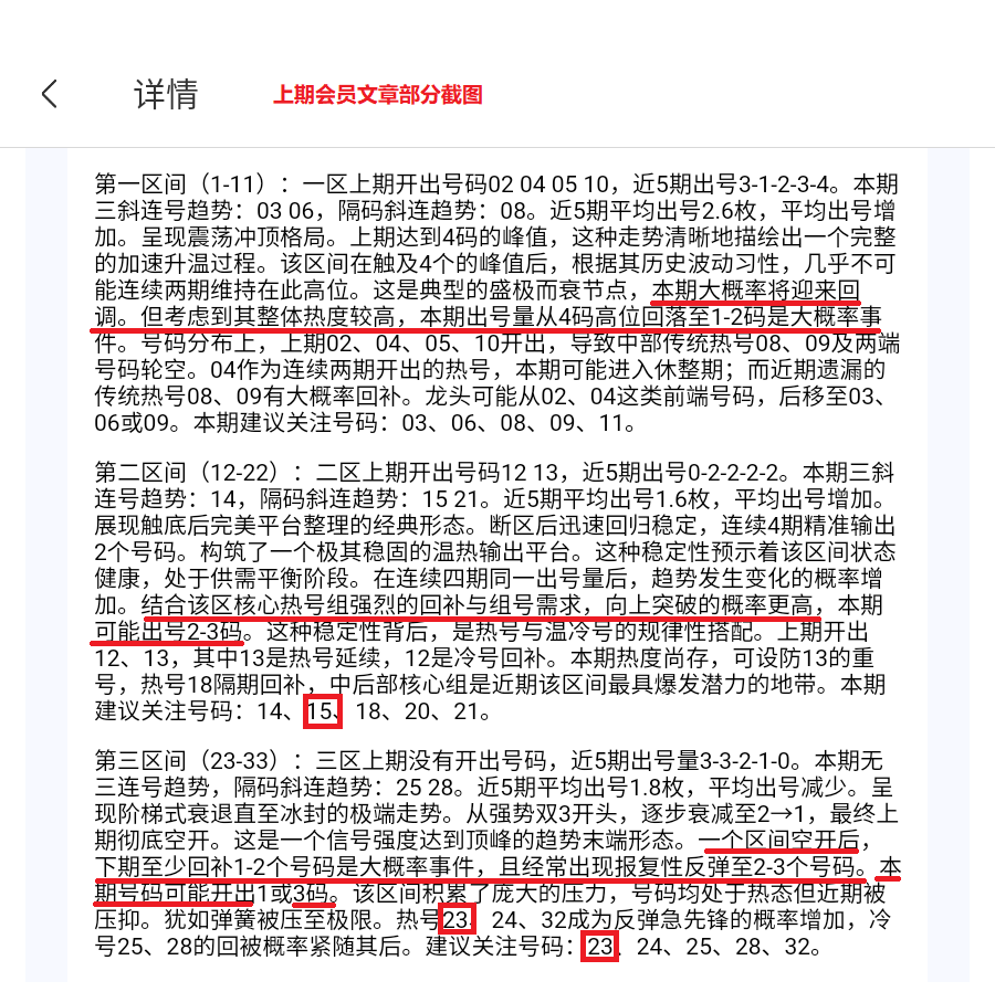 *注:龙头,凤尾,胆码推荐均为会员文章专属。
