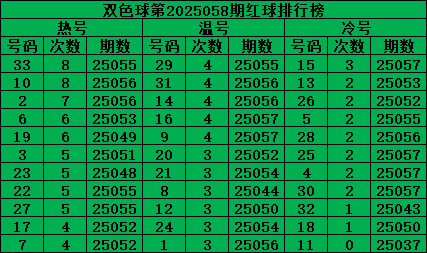 综上所述,双色球第2025058期推荐号码: