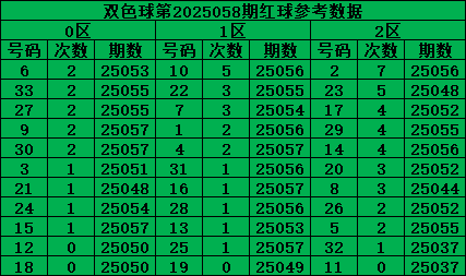 2025057期012区出号比是:3:3:0,25058期推荐012路比:3:1:2