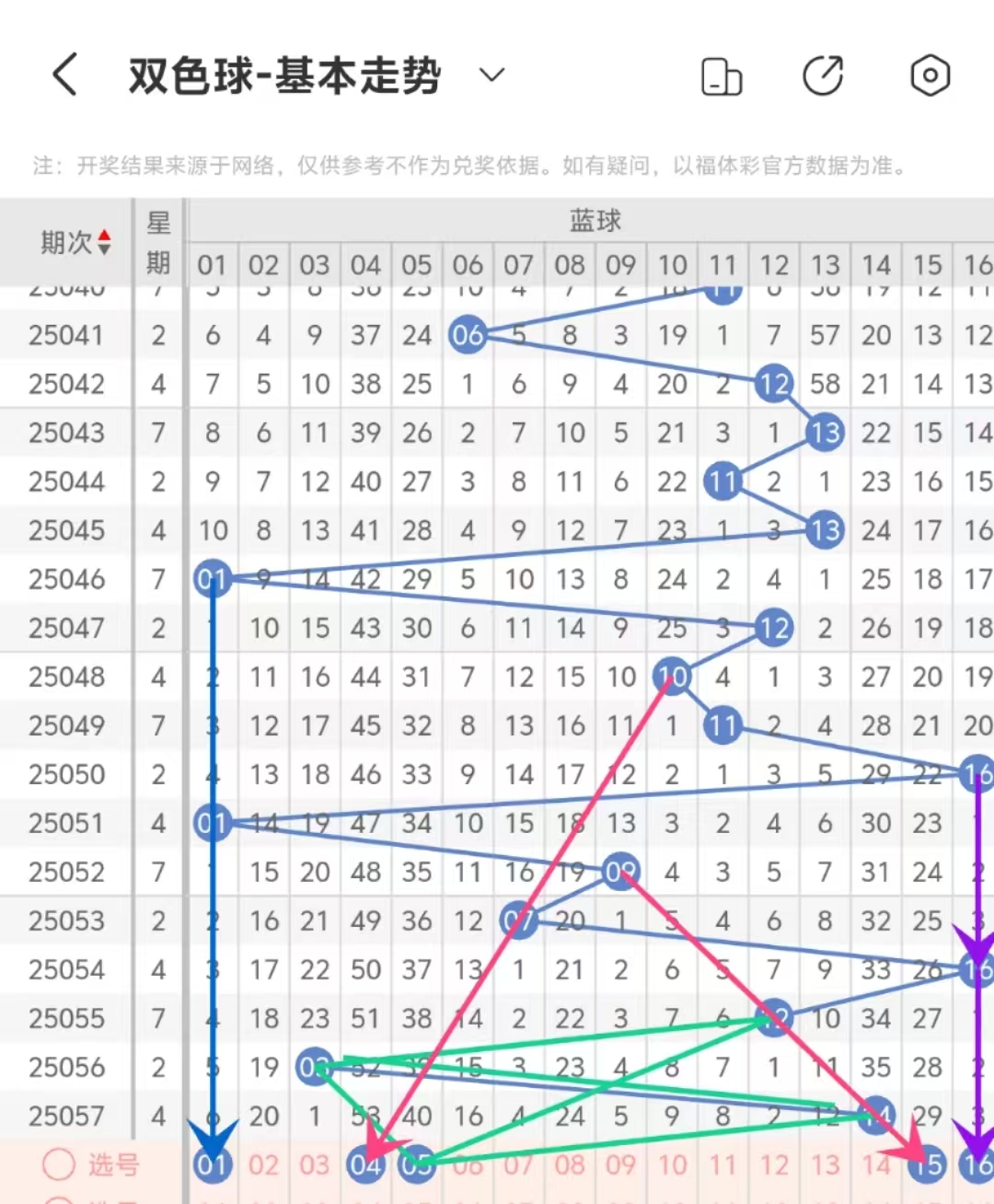 本期蓝球重点关注:01 04 05 15 16