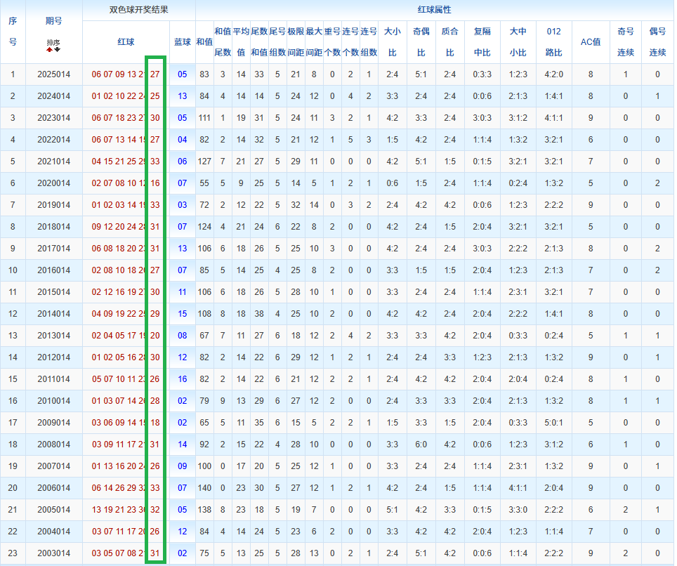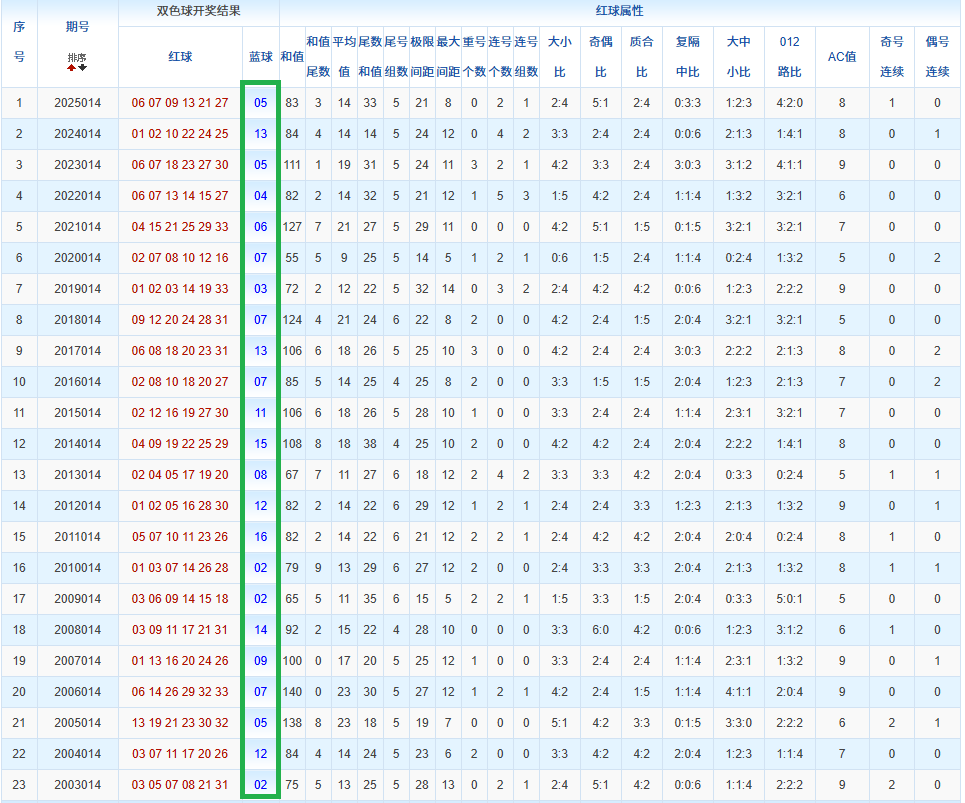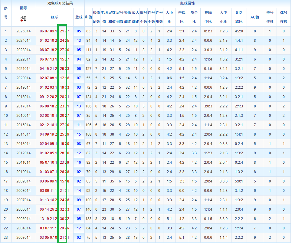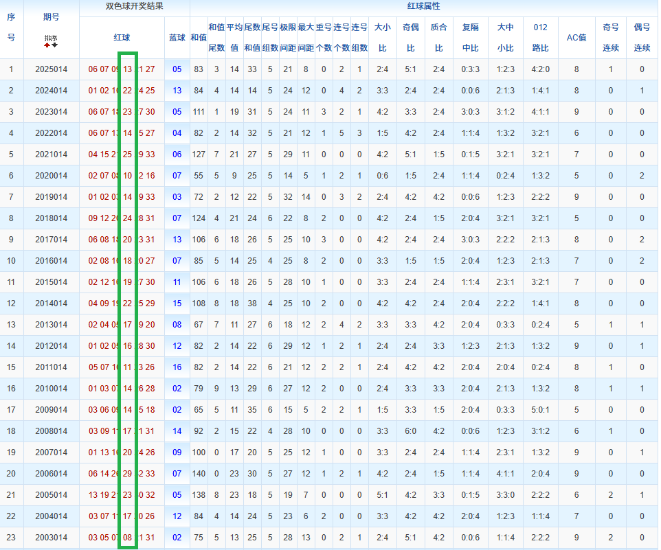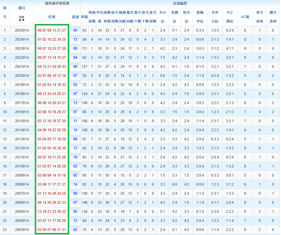 通过观察,我发现双色球往年同期的开奖数据与本期号码之间存在显著关联。具体来说,在红球中,从第一位至第六位,通常会有约4个位置上的数字与往年同期相同位置的号码一致;而蓝球号码中,也有多期开奖结果直接包含了往年同期的数字。因此,我们可以借助往年同期各位置上的号码,作为分析本期开奖情况的重要依据。在此基础上,还可结合往年同期的其他相关条件,进行综合性的号码组合推荐。