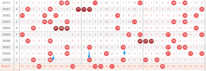 大家好,本人蔡楚门,一个玩彩十几年的老彩民,现在来本平台分享一下本人的对彩票的分析思路和看法,希望本人的文章能够给你们带来灵感和好的运气,首先感谢一起彩提供一个好的平台,下面走势图都是用一起彩平台的走势图,接下来分析一下福彩双色球第2026009期的红球号码思路和蓝球号码思路。