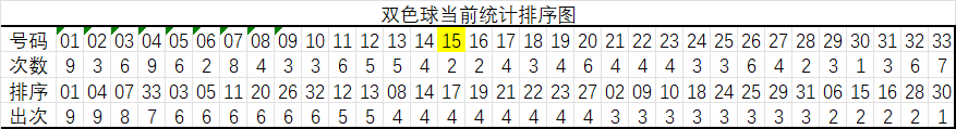 红球15码大底统计顺序:01,04,07,33,03,05,20,26,32,12,13,08,14,21,22
