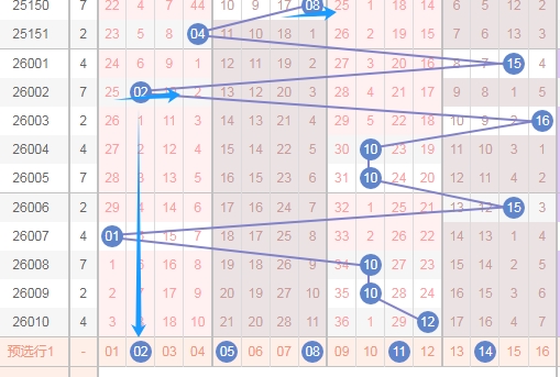 上图是福彩双色球蓝球开奖号码分布走势图,我在上面走势图中标注出来的数字都是2路球数字02 05 08 11 14,除以3余数是2的数字都是2路球数字,你们看上面走势图中标注出来的蓝色大箭头就知道,最近2路球数字出现号码的不多,2路球数字连续8期没出现,那么本期大家要留意出2路球数字02 05 08 11 14。