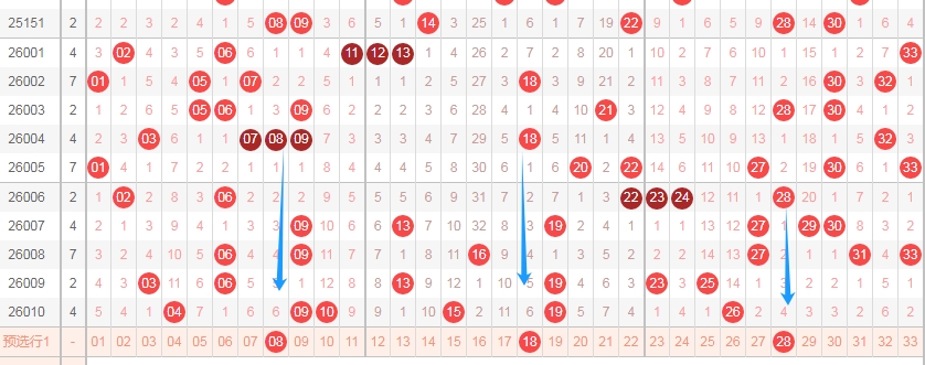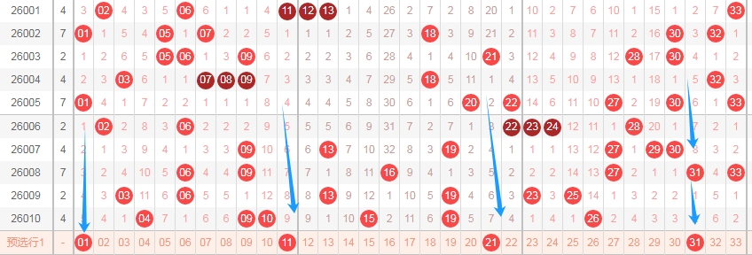 大家好,本人蔡楚门,一个玩彩十几年的老彩民,现在来本平台分享一下本人的对彩票的分析思路和看法,希望本人的文章能够给你们带来灵感和好的运气,首先感谢一起彩提供一个好的平台,下面走势图都是用一起彩平台的走势图,接下来分析一下福彩双色球第2026011期的红球号码思路和蓝球号码思路。