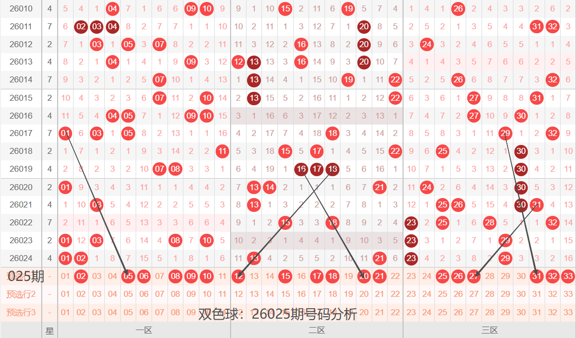 双色球:26025期号码落位分析(开工大吉)
