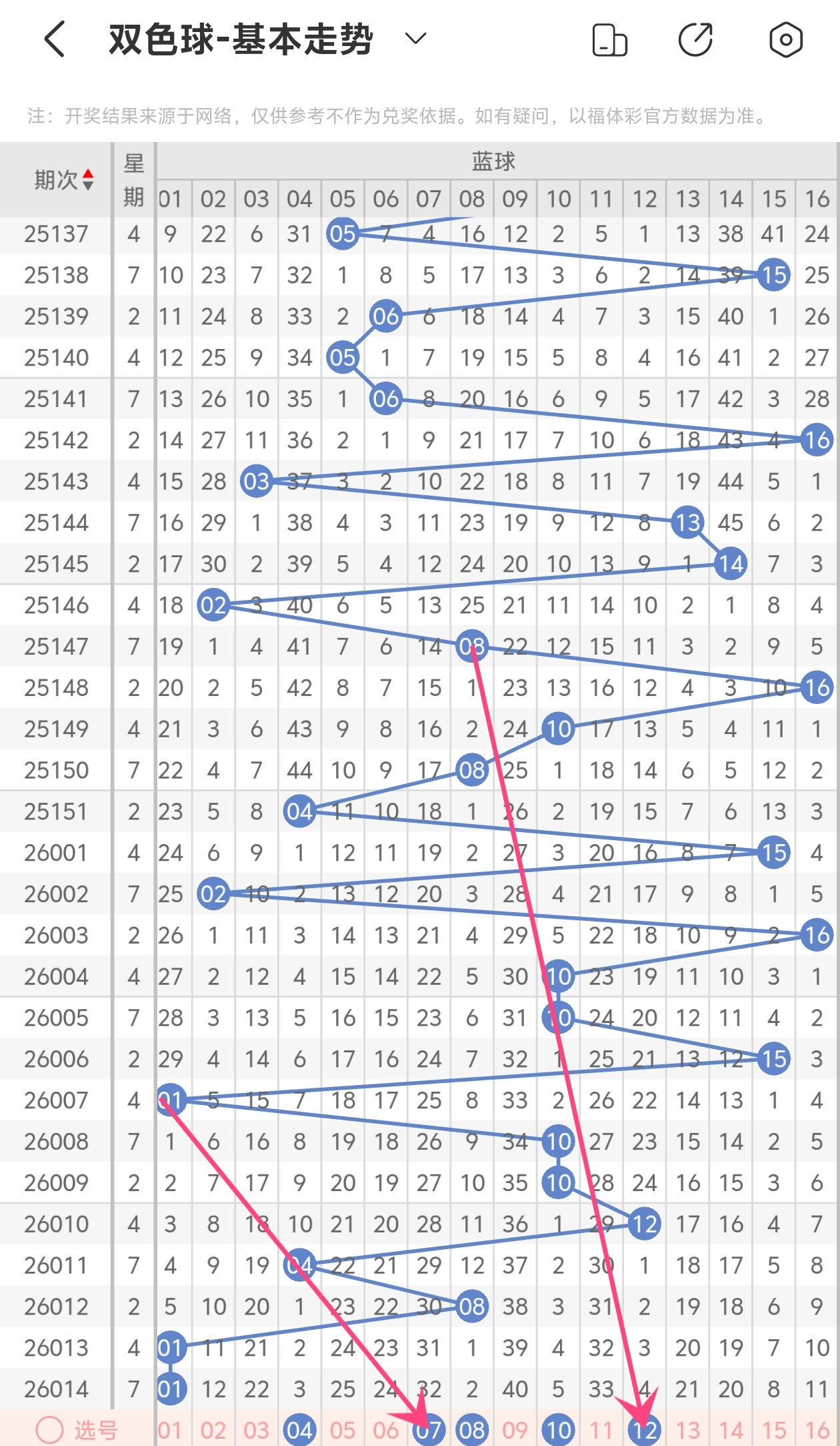 下面双色球的蓝球走势图分析: