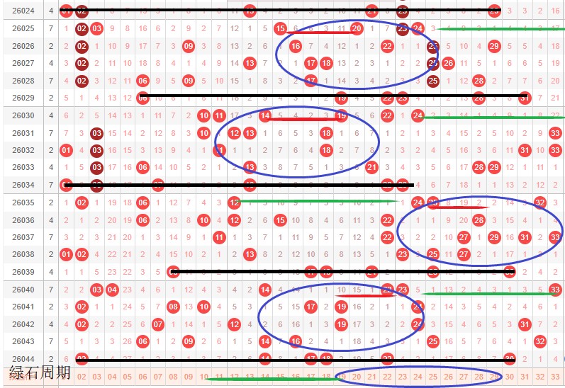 如图所示:体现的是3个局部走势的发展周期,圆圈为密集处的填空,本期定性为新局部走势2期真实目的空间填蛋跨期,宜围着22建蛋跨绿色线布局在2区,代表大号不低于3枚。