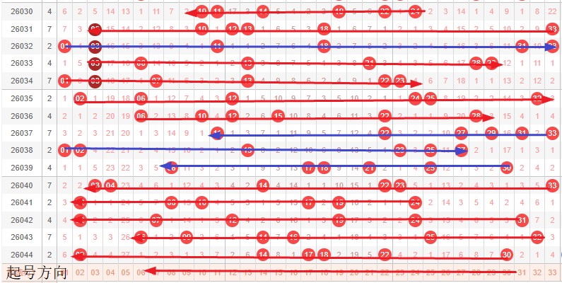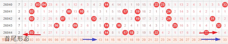 如图所示:首尾制约平衡组范围依次为:拉推拉,推推? 本期形态范围优先选择红色拉伸首尾。由于上期号码已经进入新走势第1期,目前处在新走势第2期,利用常规起号形成右推还是拉伸,就是走势正反方向。