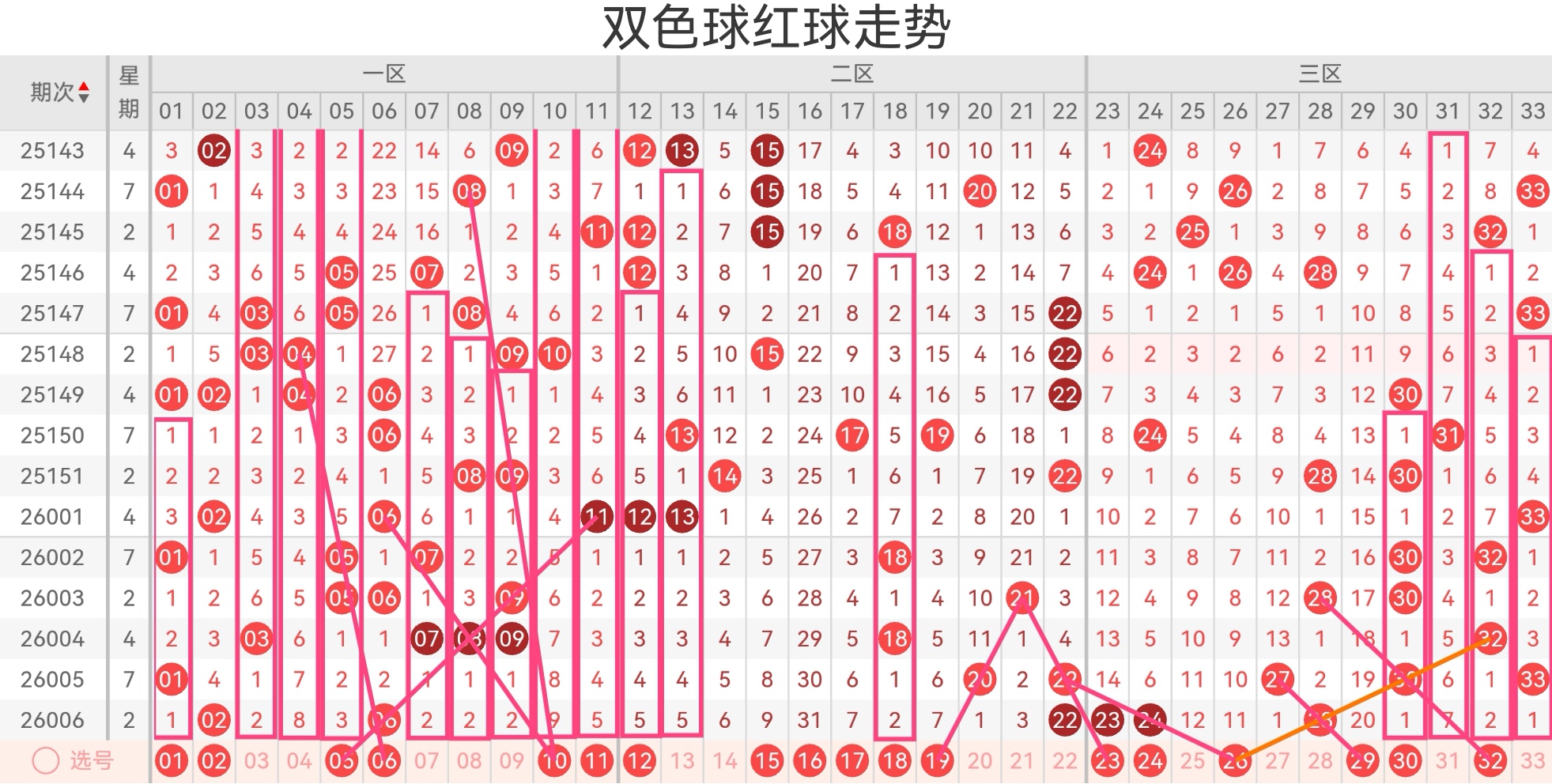 双色球第26007期基本走势分析如下: