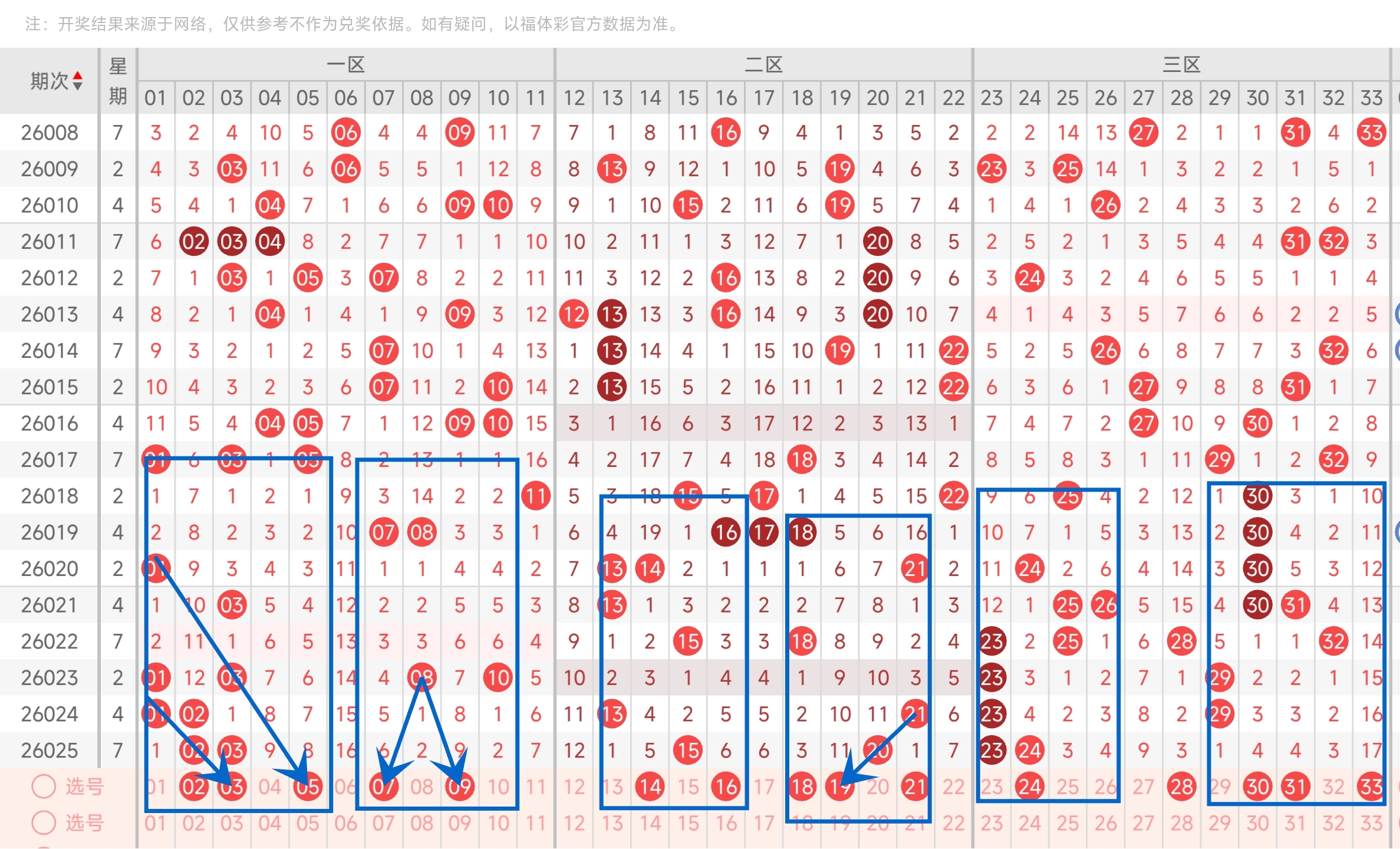 26021期双色球文章中推荐中命中31325314个红球,蓝球命中4
