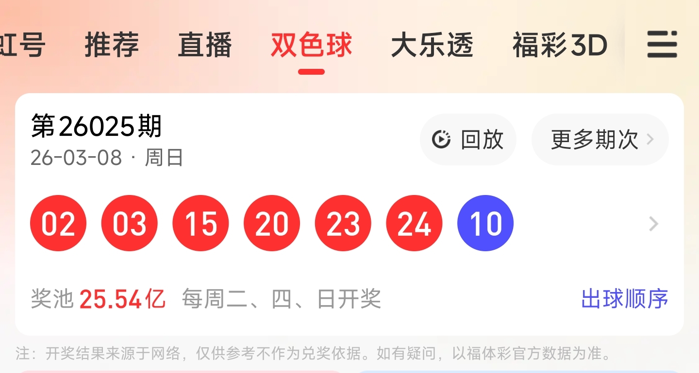 红球开出2315202324,蓝球开出10