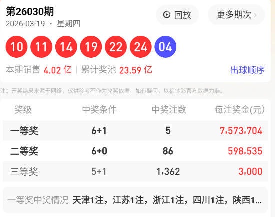 上期回顾:双色球030期开出红球号码为: