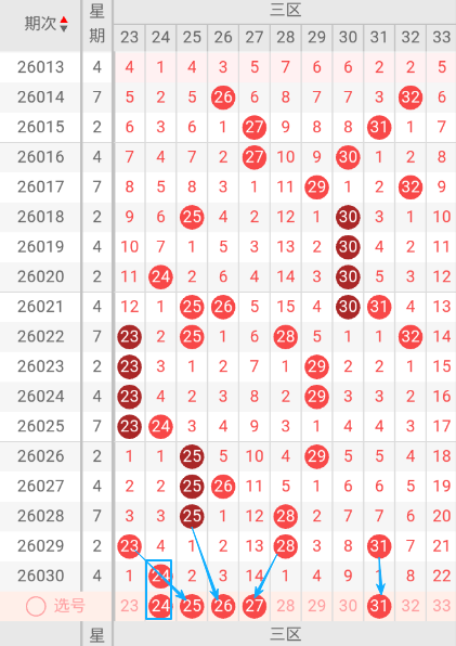 双色球三区(23-33)