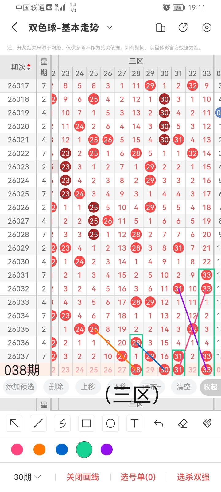 通过以上对上期的简单回顾,下面进入双色球第2026038期(下面简称本期)的选号分析:
