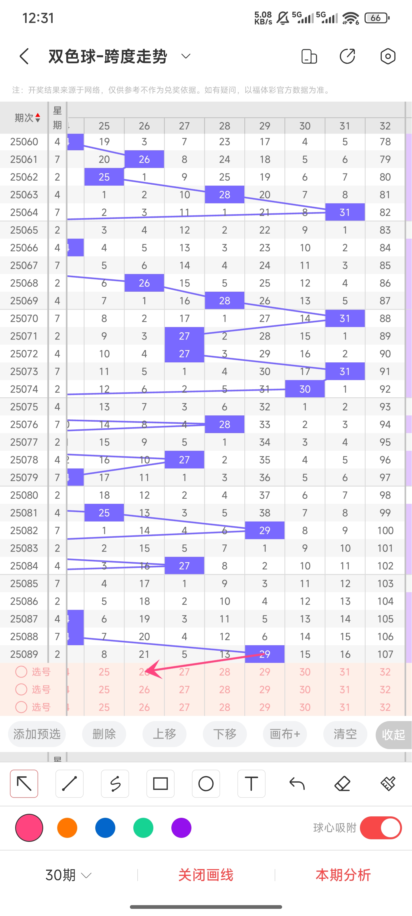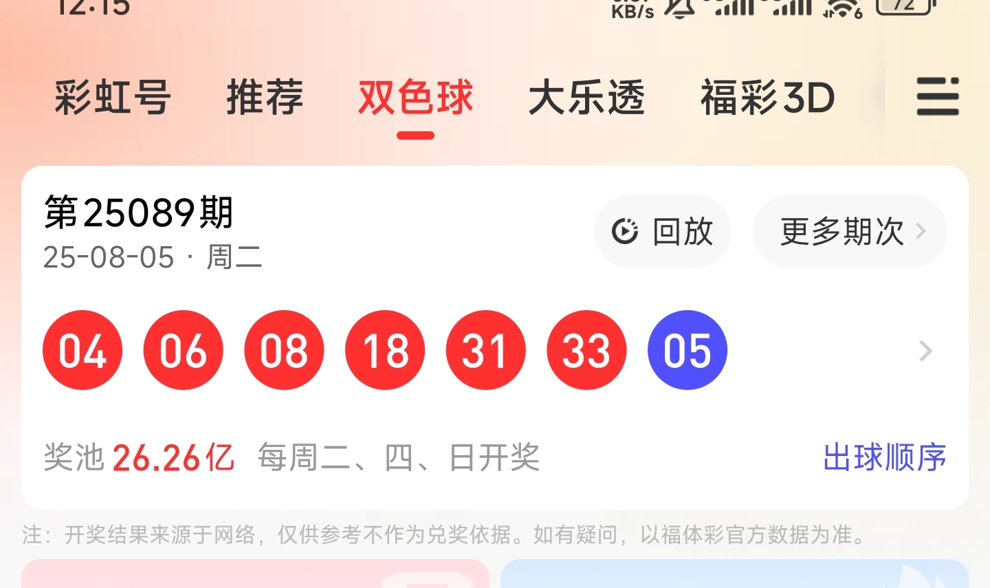 第25089期双色球文章中推荐中命中04,06,31,33等4个红球,命中蓝球05。