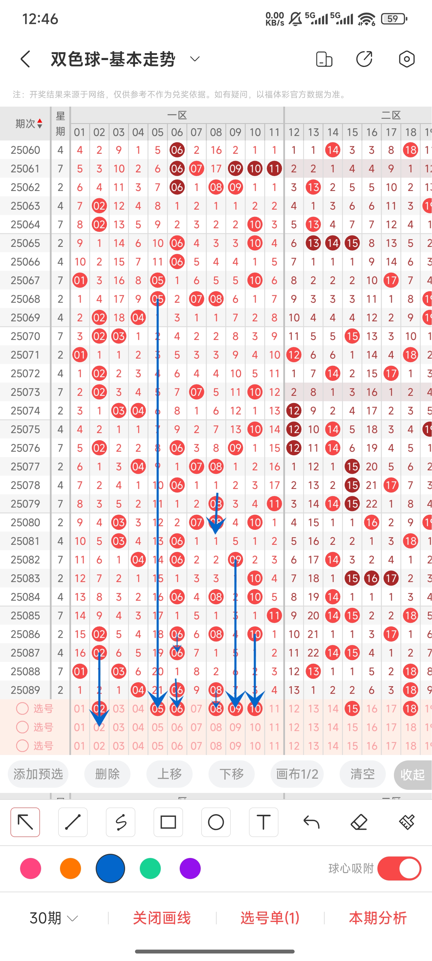 第25084期双色球文章中15+5推荐中命中06,08,10,14,33等5个红球,命中蓝球15。
