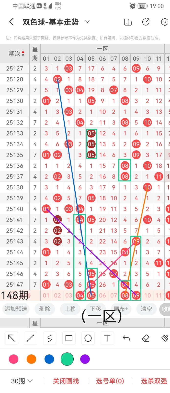 通过以上对上期的简单回顾,下面进入双色球第2025148期(下面简称本期)的选号分析: