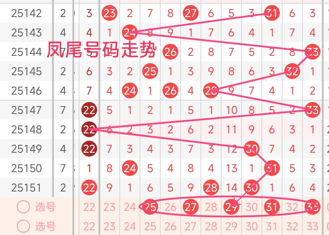 红球三区推荐(23~33): 上期开出2枚号码,号码为28、30,本期红三区建议出号1-3枚,本期红三区建议出关注号25、27、29、31、33。