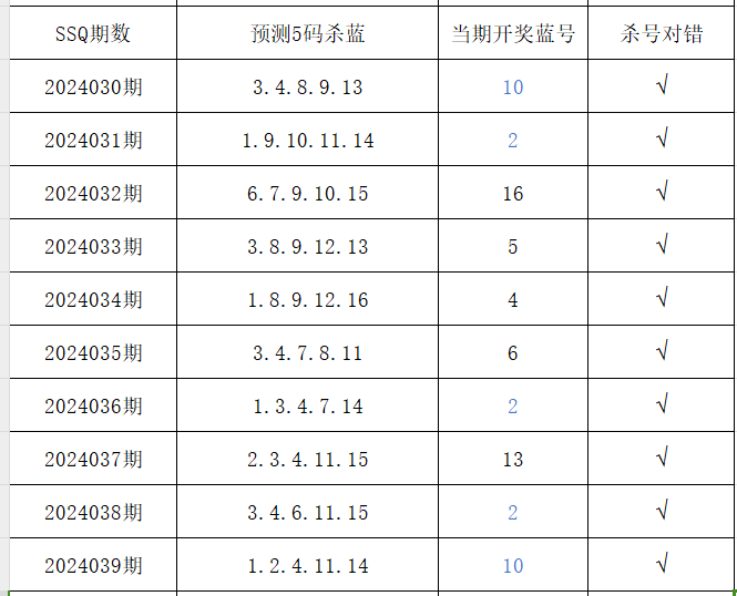最后看蓝球号码的数据分析:相对于红球号码,蓝球才是一招致胜的关键。先看近一个周期内重复开出的蓝球有:2.10,开出一次的蓝球有:4.5.6.13.16,遗漏未出的蓝球有:1.3.7.8.9.11.12.14.15。结合蓝球杀号,进一步精简蓝球号码。以近10期蓝球杀号的统计数据为例: