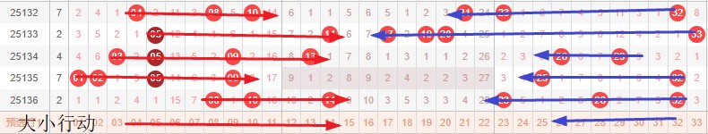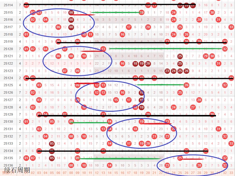 如图所示:体现的是3个局部走势的发展周期,圆圈为密集处的填空,本期定性为新局部走势4期,架构填空第1期,主力填空第2期,预估蛋跨在3区22-32,本期绿色线属于平行填走势,红色线压缩,蛋跨预估2-3枚。