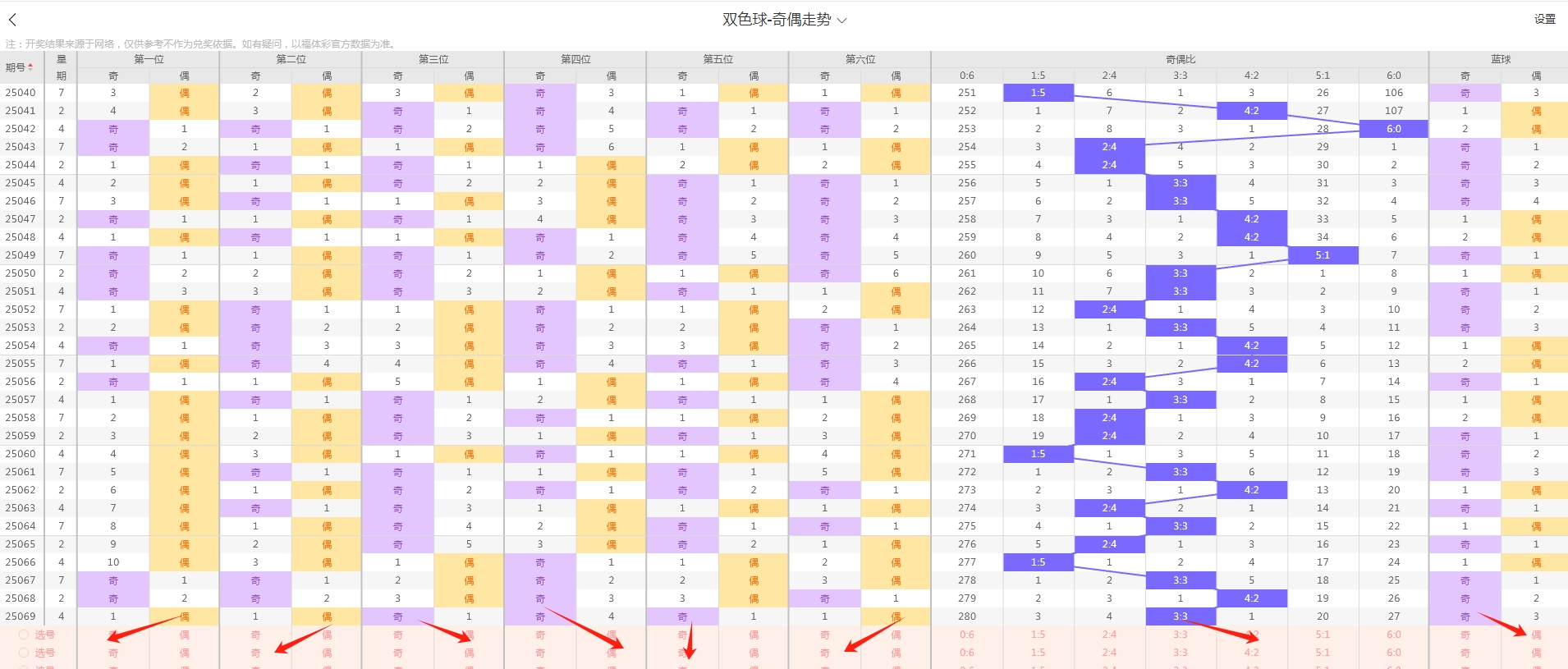 今天这期的趋势判断,前区主看奇数回补,后区主看偶数回补,012路红球注意1路延续,自行斟酌,参考为主。