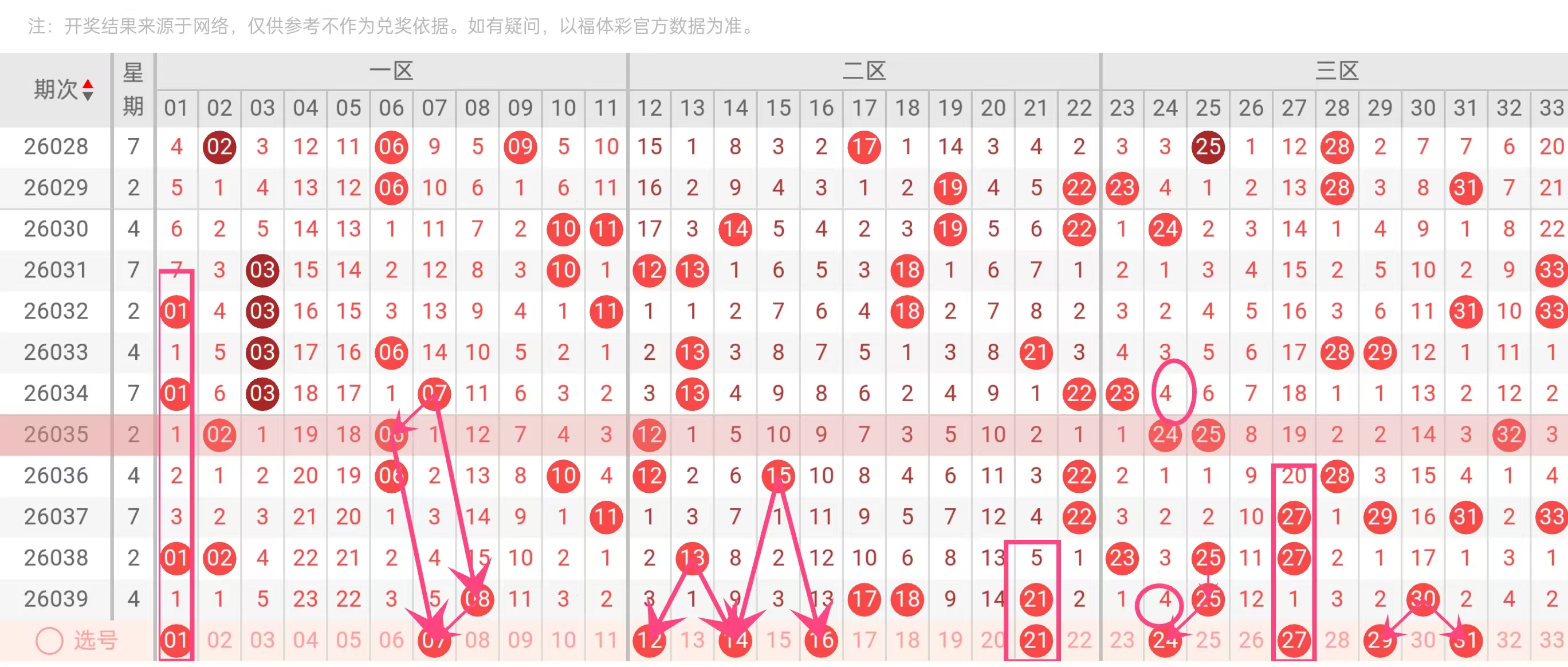 上期(2026033)开奖03、06、13、21、28、29。