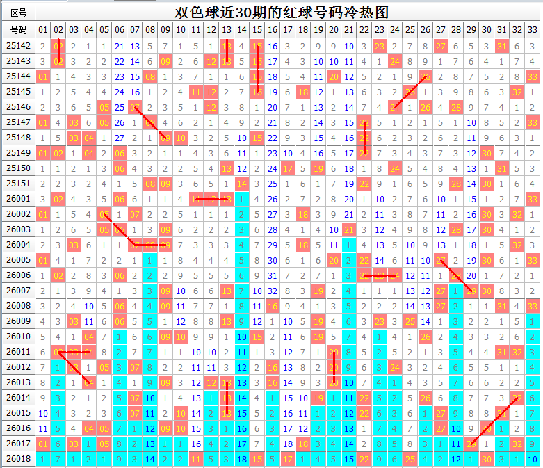 以下是双色球最近7期(26012-26018期)的推荐情况,更多期数的请参考往期文章: