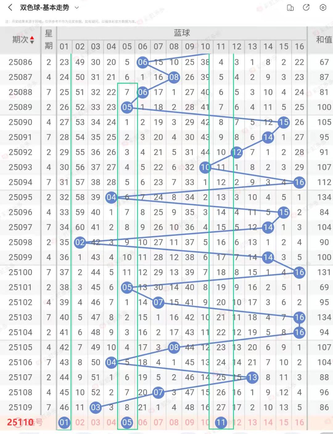 上期蓝球03,奇数、质数、012路为0路,重开机率不大,不过各人的看法而落号,按照奇偶排列走势和质合排列走势本期综合看好奇质数,012路看好2路防1路。如小号可参考01、05,如大号可参考11。本期推蓝球号码可参考01、05、11。