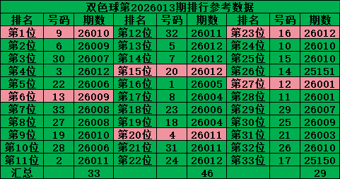 以双色球当前最大遗漏做为参考数据,可分为冷热温三区: