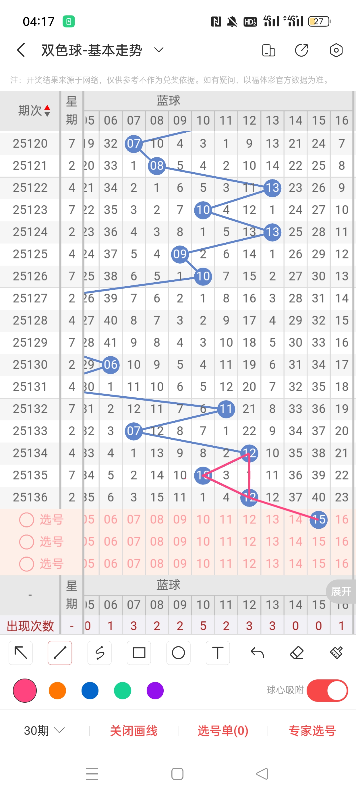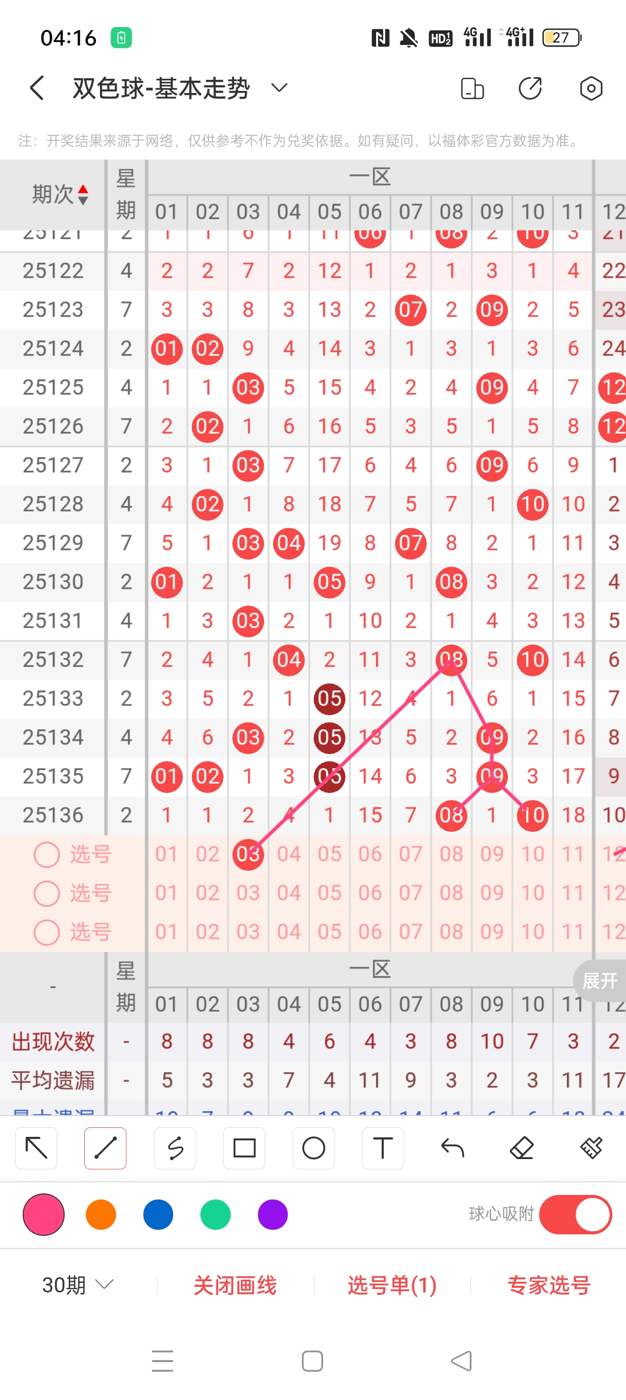 后区(1-16)近128期本区012路32:46:52,1/2路热度高,本期着重0路。15已遗漏40期,与12之间呈现向右遗漏递减态势,需防。