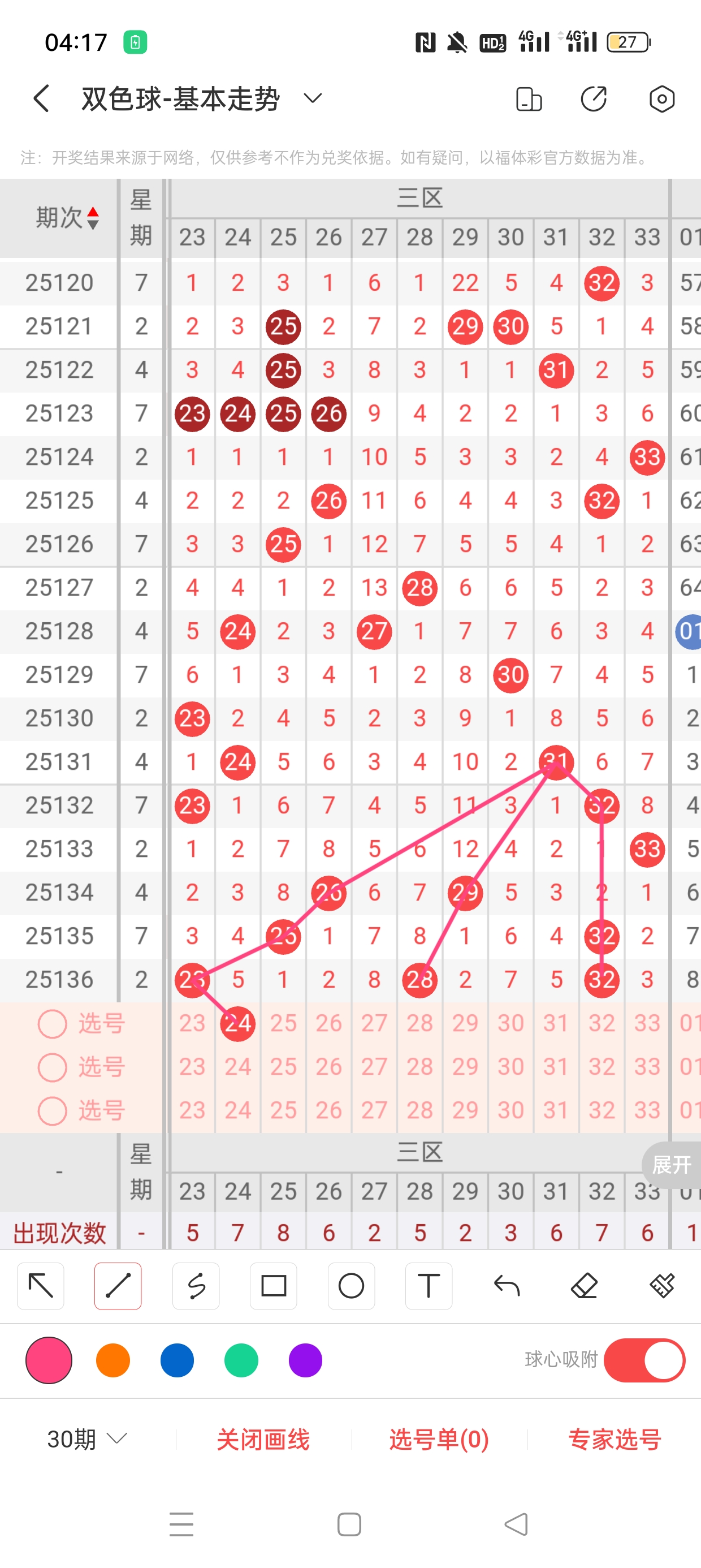三区(23-33)近128期本区邻孤传55邻99孤6传,孤号热度高,本期着重邻传。近128期本区012路55:55:60,1/2路热度高,本着重0路。24已遗漏5期,与23之间呈现向右遗漏递减态势,需防。