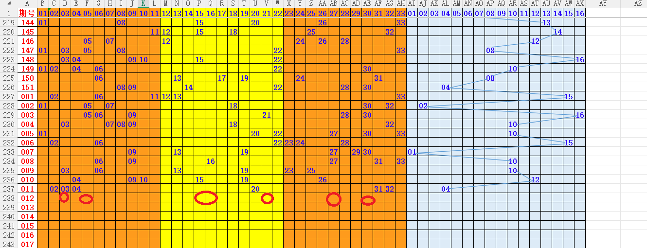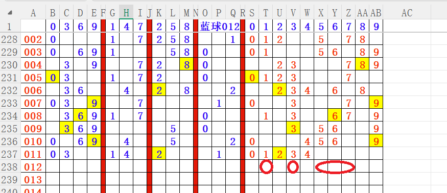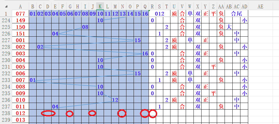如上图4,012路分析012路,本期重点10路。重点 03 05 09 13 16