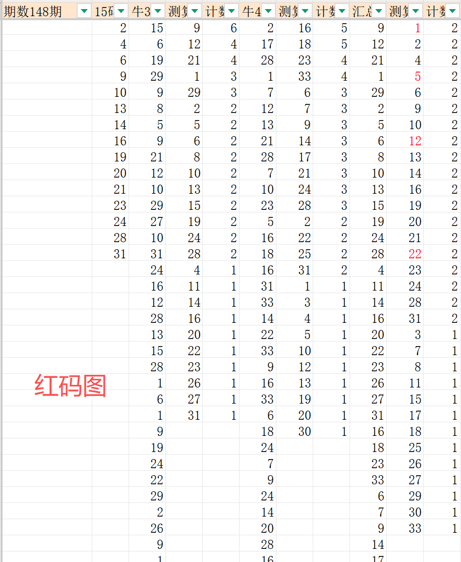 得出一组红码数据就是:2 4 6 9 10 13 14 16 19 20 21 23 24 28 31