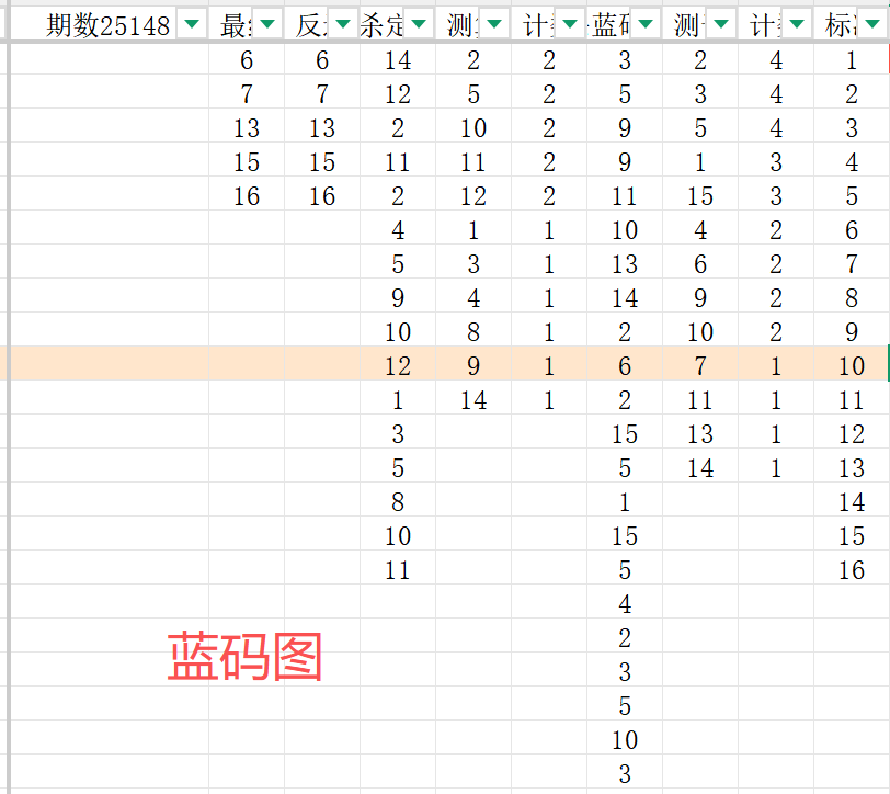 首先可以看一下蓝码的对比结果通过两个图表数据的对比,我们把蓝码的范围确定为6 7 13 15 16
