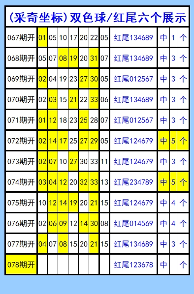 双色球第078期图文(采奇坐标),红尾六个推荐