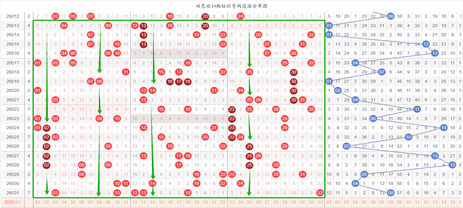 17连环图前19期各个位置的遗漏情况