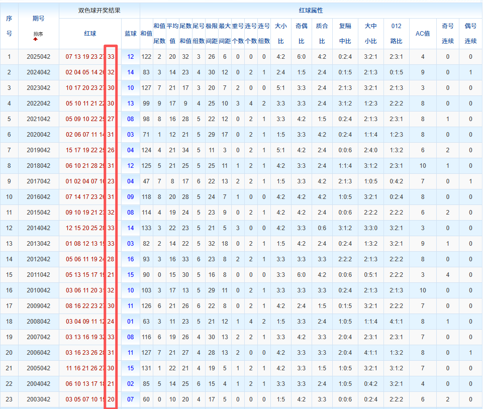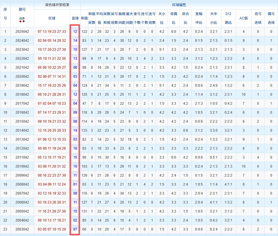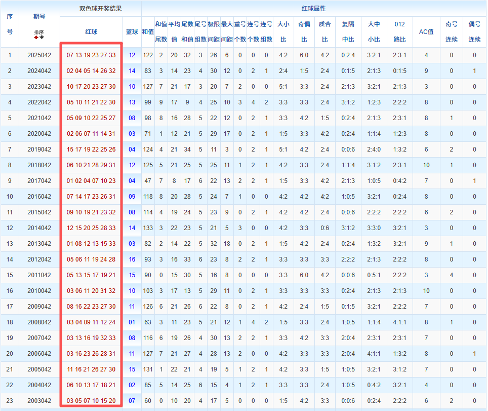 通过观察,我发现双色球往年同期的开奖数据与本期号码之间存在显著关联。具体来说,在红球中,从第一位至第六位,通常会有约4个位置上的数字与往年同期相同位置的号码一致;而蓝球号码中,也有多期开奖结果直接包含了往年同期的数字。因此,我们可以借助往年同期各位置上的号码,作为分析本期开奖情况的重要依据。在此基础上,还可结合往年同期的其他相关条件,进行综合性的号码组合推荐。