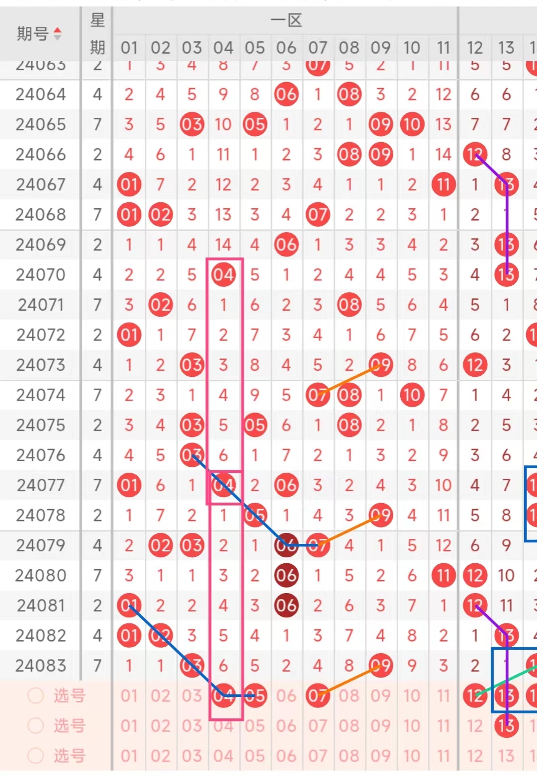 一区部位斜连号非常明显,优选04,05号,但是作为老谋深算的主任,这两个号有可能是诱饵,大家也可以参考一下02,03号也不是错的选择。