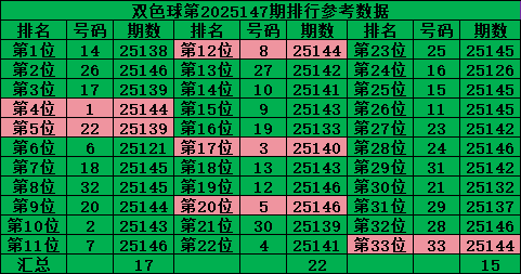 以双色球自开奖以来每个号码出现的次数排位,可分为冷热温三区: