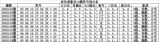 上期奇偶比为5:1,奇数活跃,近10期奇偶比为3426,奇数红球活跃,其中奇数红球热4期,平衡4期,走冷2期,本期预计偶数逐渐回补,关注奇偶比为1:5